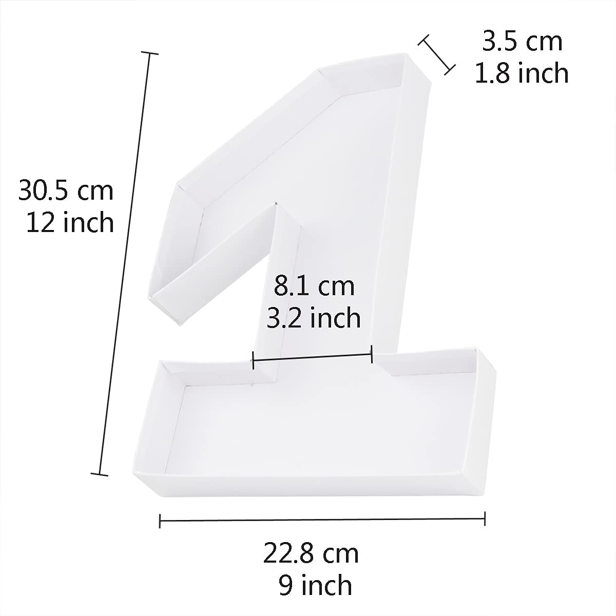This product includes 1 Fillable Cardboard Number box, 1 Clear Lid and 1 White Base.