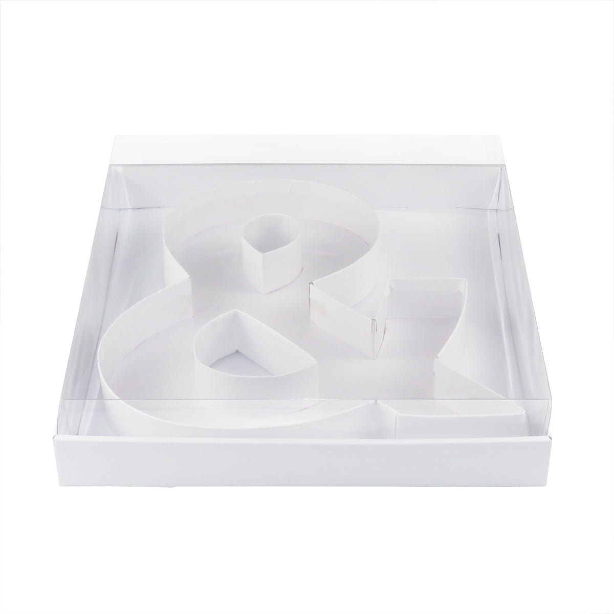 This product includes 1 Fillable Cardboard Symbol box, 1 Clear Lid and 1 White Base.